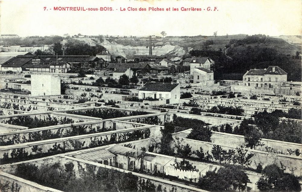 Much like the Chasselas grape walls of Thomery near Fontainebleau, Montreuil gained international recognition for its peaches, before the railway made it cheaper and easier to bring peaches to Paris from the south. Those little details don’t have much to do with the subject at hand, but I thought I’d throw them in there anyway, for spirit of place.